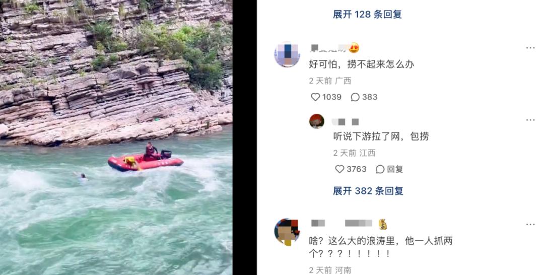最后,尽管看起来很危险,倒也不用过于担心。不少景区郑重给出了“包捞包活”的承诺,并且在下游安置有阻拦网,方便打捞和家人认领。