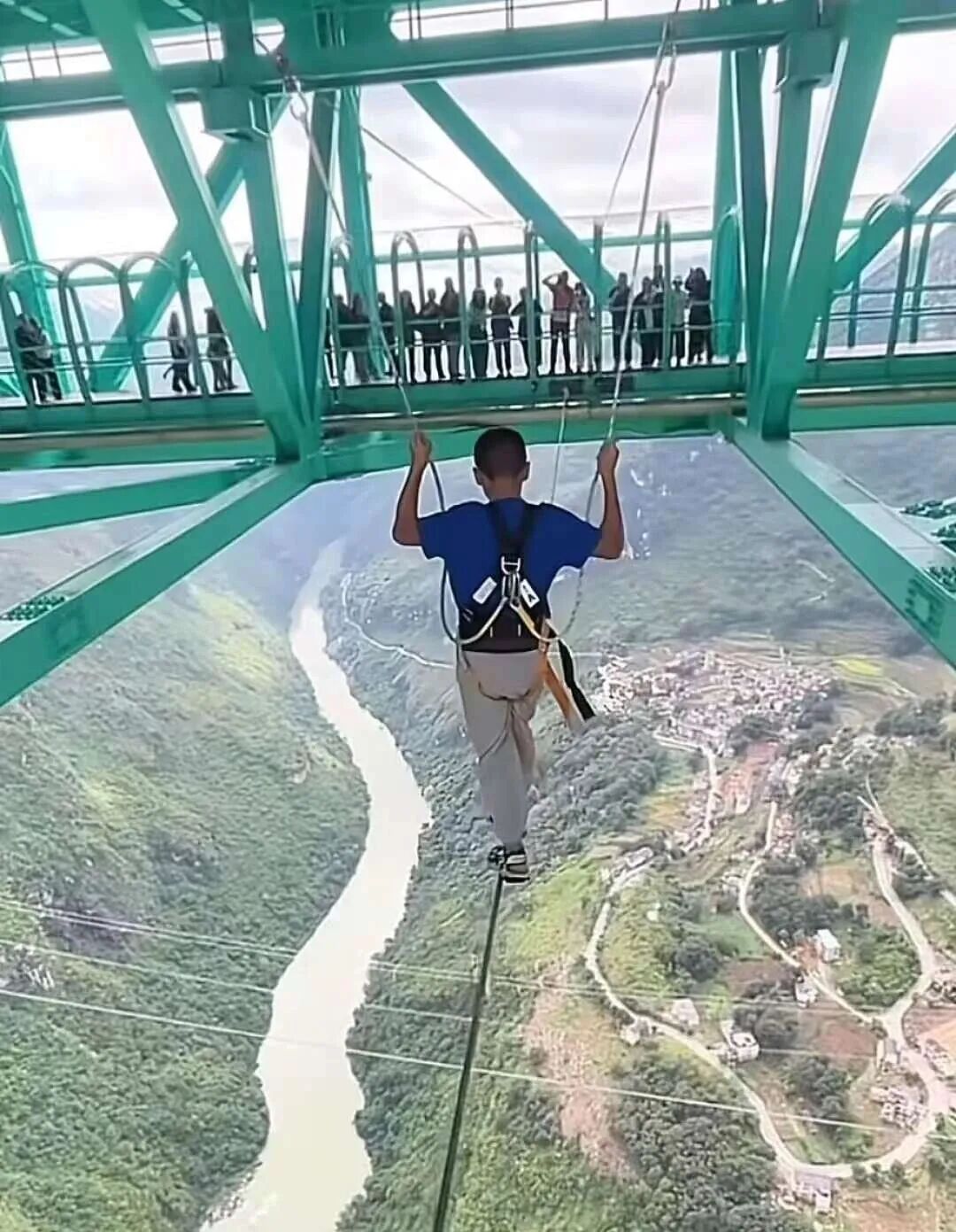 这个“横竖”都是世界第一的大桥,被因地制宜开发成了极限运动乐园,项目包括蹦极、无绳蹦极、跳伞、空中荡绳、高空竞速跑道等。