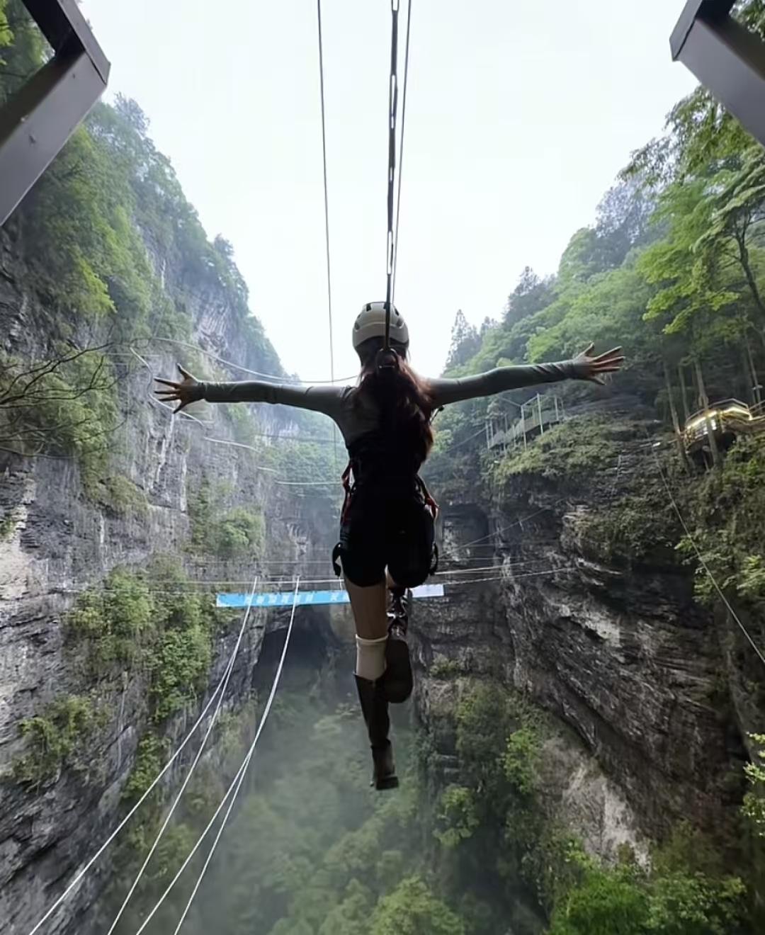 不仅是漂流,天坑、峭壁、暗河、飞瀑等各种景观,都被开发成了各类刺激项目,全面激发人类天性。