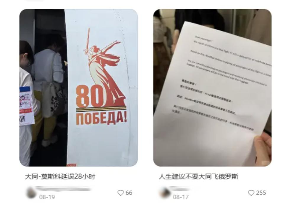 8月17日,有网友买了俄罗斯回大同的机票,正在登机口上准备回国时被告知无限期延误,因为飞机零件丢失,只能修好了再走。