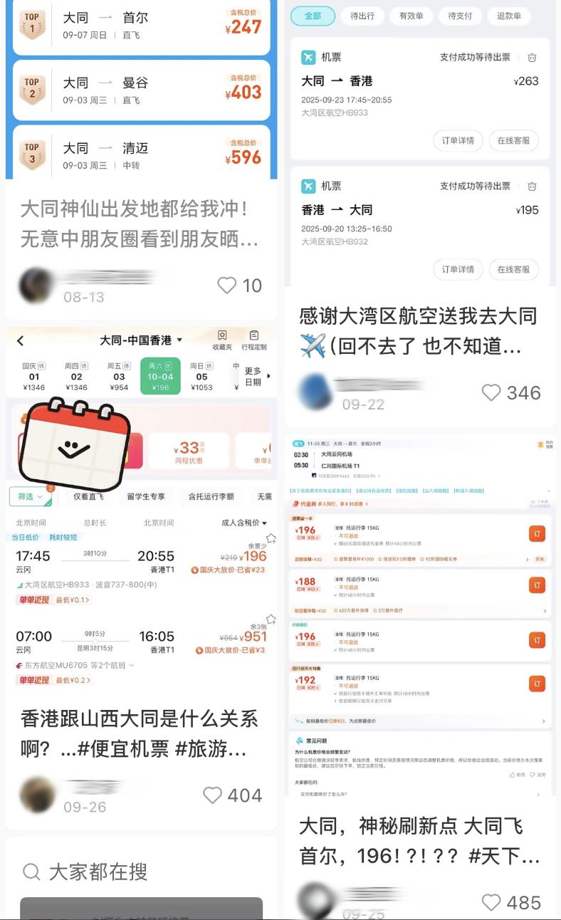 5.21世纪经济报道,《山西大同因低价机票又火了,飞首尔不到300元、曼谷往返350元》,2025.09