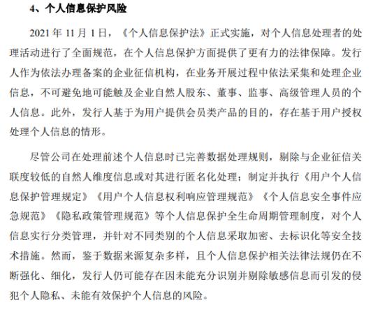 同时,在个人信息保护方面,尽管其在处理相关个人信息时已采取多种措施,但“鉴于数据来源复杂多样,且个人信息保护相关法律法规仍在不断强化、细化,其仍可能存在因未能充分识别并剔除敏感信息而引发的侵犯个人隐私、未能有效保护个人信息的风险。”