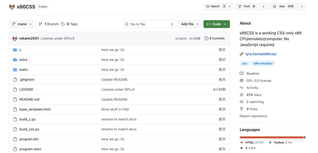 目前,Lyra Rebane 已经将 x86css 项目的代码开源(https://github.com/rebane2001/x86css),让感兴趣的开发者能自己编译程序、探索这个 CSS 模拟器的奥秘。