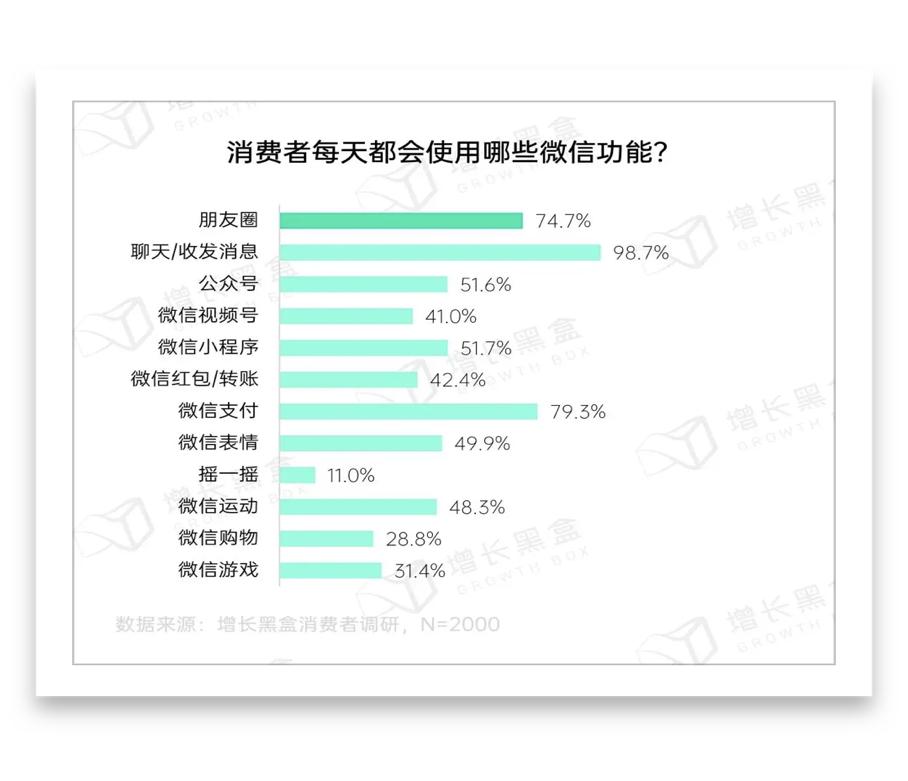 调查也确实如此。“增长黑盒”数据显示,月收入在30000以上的人群微信朋友圈功能渗透率最高,有85%的人表示自己会每天使用微信朋友圈功能,并且这类人群刷朋友圈的时长增加比例也最高。