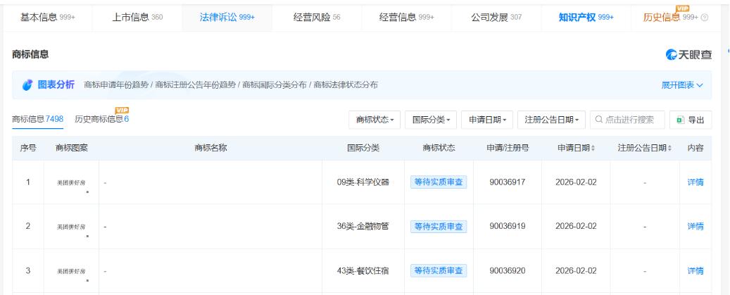 天眼查显示,美团关联公司北京三快科技有限公司已申请注册3枚“美团拼好房”商标,分类涵盖科学仪器、金融物管、餐饮住宿,目前均为“等待实质审查”。