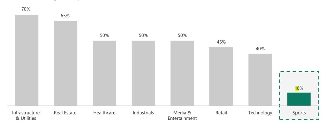 尽管体育产业基础坚实,其资本结构却存在显著低效。报告指出,体育俱乐部的平均贷款价值比仅约10%,而房地产、医疗健康等资本密集型行业普遍达到40%至70%。杠杆率偏低、机构融资利用不足,与行业的稳定性和增长潜力形成鲜明反差。