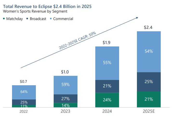 ▲女子体育各细分领域收入。