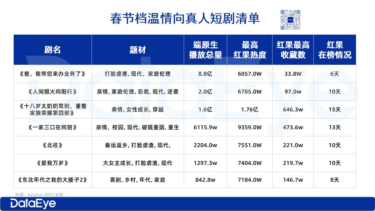 在这个春节档,DataEye研究院看到了真人短剧最具不可替代性的特质——人情味、烟火气。