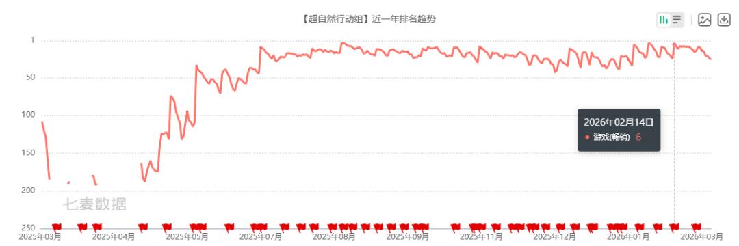 开年就交出亮眼成绩单的,还有巨人网络。旗下旗舰产品《超自然行动组》的爆发增长,推动巨人网络2月收入大涨66%,创下历史新高的同时,排名也提升了10位来到发行商收入榜TOP16。