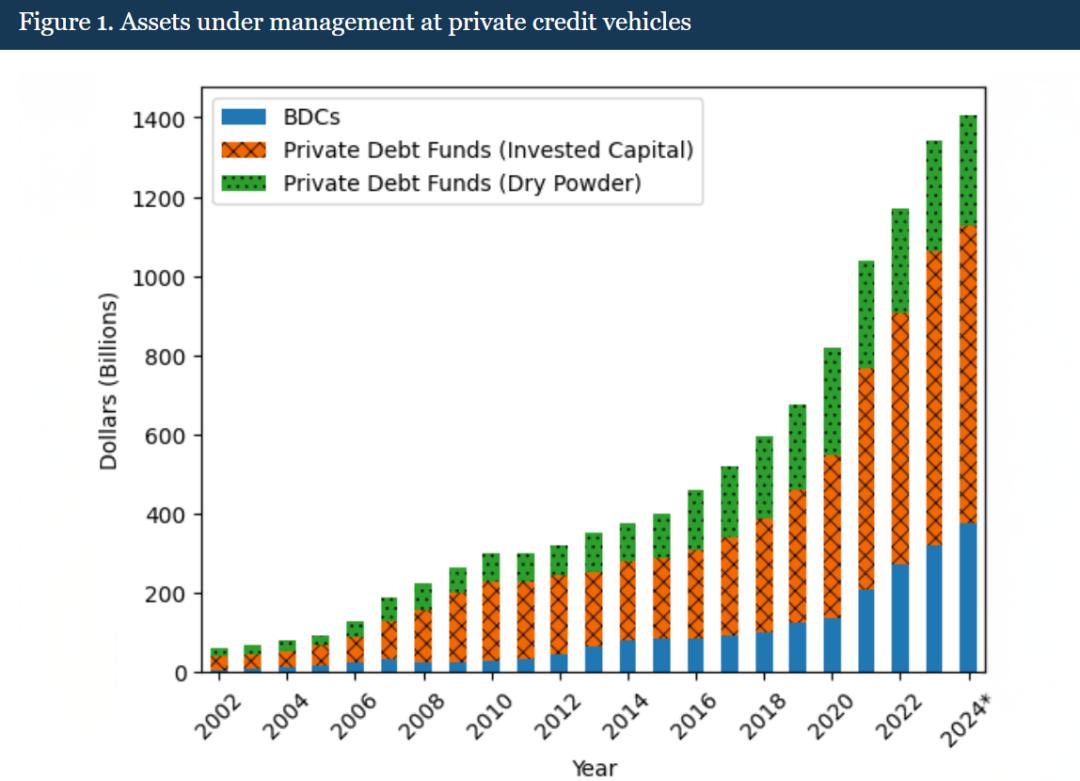 作为背景,私募信贷(Private credit)是影子银行体系的重要组成部分。投资者(通过资管机构)直接向私营企业提供贷款。这些企业通常规模较小,难以获得传统银行的贷款服务,因此愿意支付更高的贷款利息。