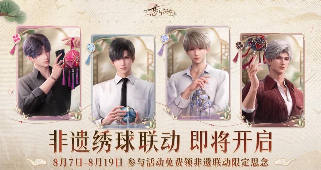 《恋与深空》和非遗绣球的联动不再是简单的售卖产品,而是在游戏内加入绣球活动,和男主角一起制作绣球,通过内容合作的形式宣传非遗文化,《恋与深空》还与洛阳宫灯、潍坊风筝等非遗文化进行过联动合作。