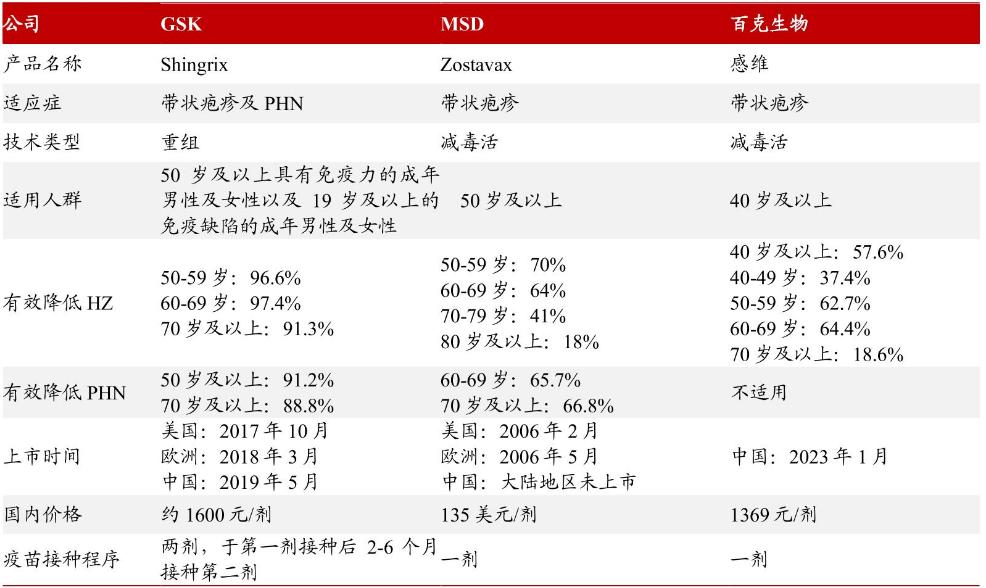 图:全球上市的三款带状疱疹疫苗,来源:招商证券