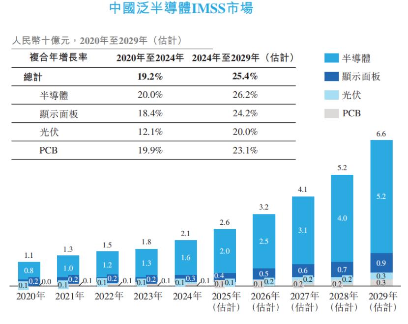 中国泛半导体IMSS市场规模由2020年的11亿元增至2024年的21亿元,复合年增长率为19.2%。预计到2029年,市场规模将增至66亿元,反映了预测期间复合年增长率为25.4%。
