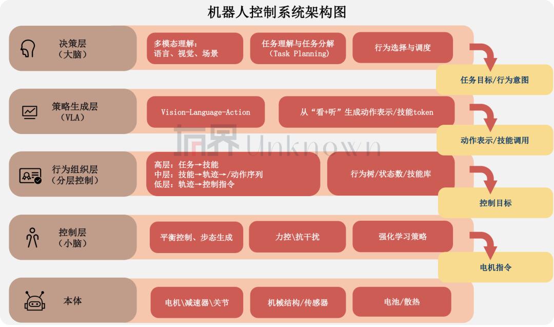 控制层(小脑):轨迹、伺服、避障、安全执行。