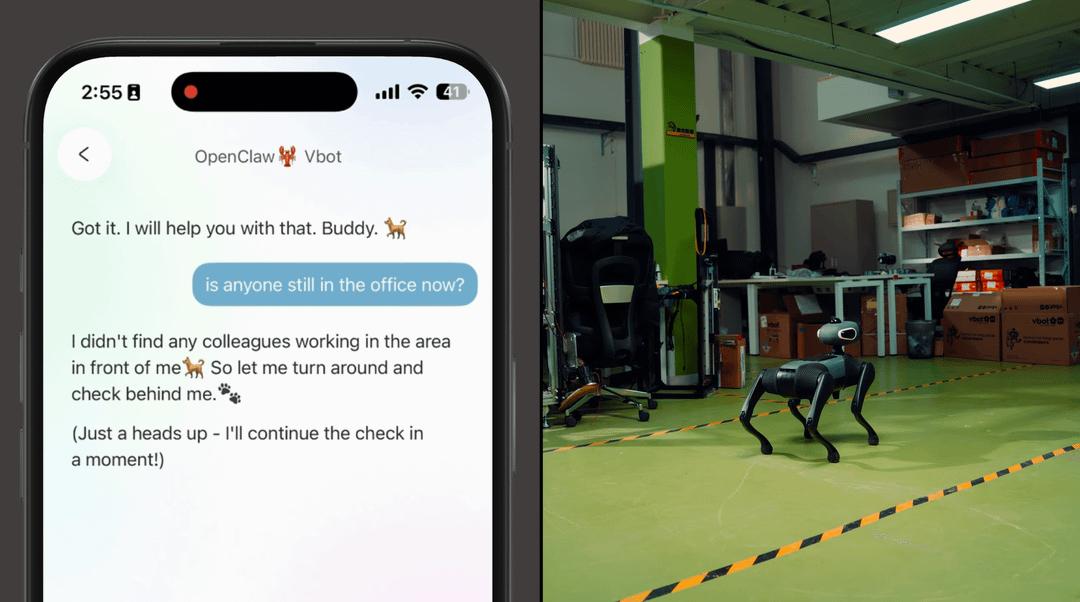 在Reddit和X上流传的一些视频中,有开发者把OpenClaw接入机器狗,让它在环境中自主巡逻。