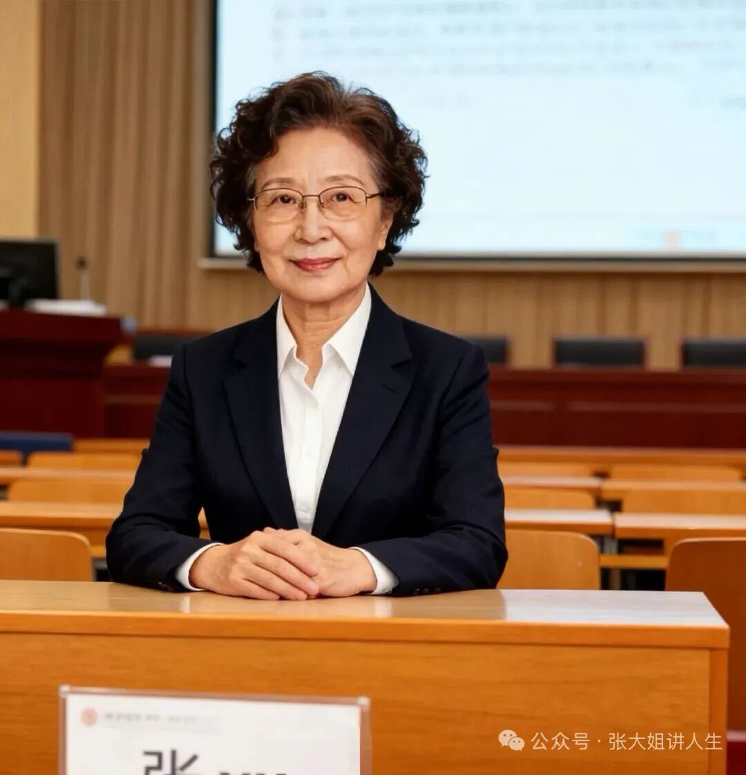有图有真相。作者在发文时还会带上一张自己参加讲座的照片,画面中是典型的高知识分子女性形象,穿着剪裁得体的深蓝色西装外套,眼神里透着慈祥与坚定。