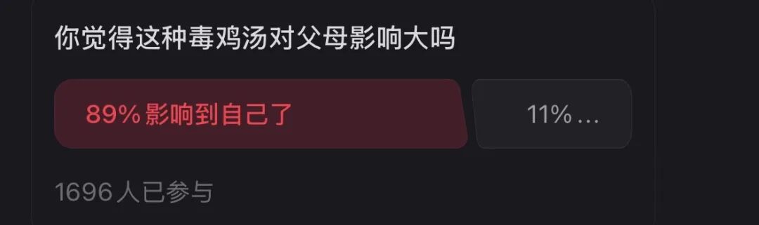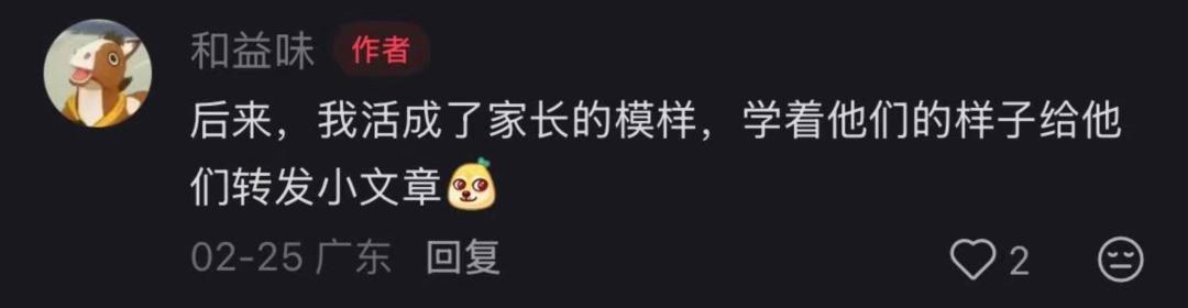 这也算是一种很有东亚特色的黑色幽默吧。子女懒得点开父母发来的毒鸡汤营销号,却又愿意大费周章生成一篇新的毒鸡汤,反向投喂给父母;父母逐字阅读子女发来的那些专家文章,却又拒绝站在孩子的角度听听他们内心的想法。