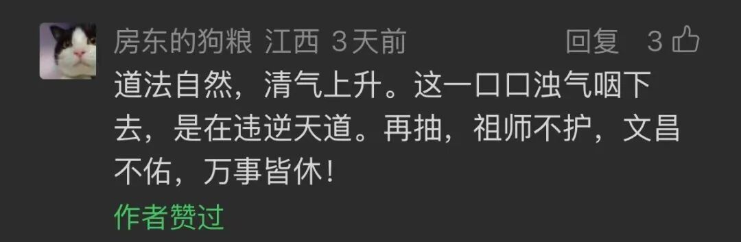 果然,评论区吸引来了许多老烟民,他们读到这篇文章时,聪明的智商又占领高地了:抽烟这么科学的事,怎么能够扯上风水!