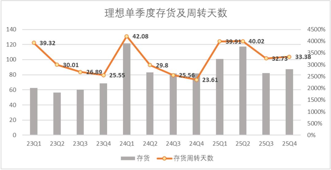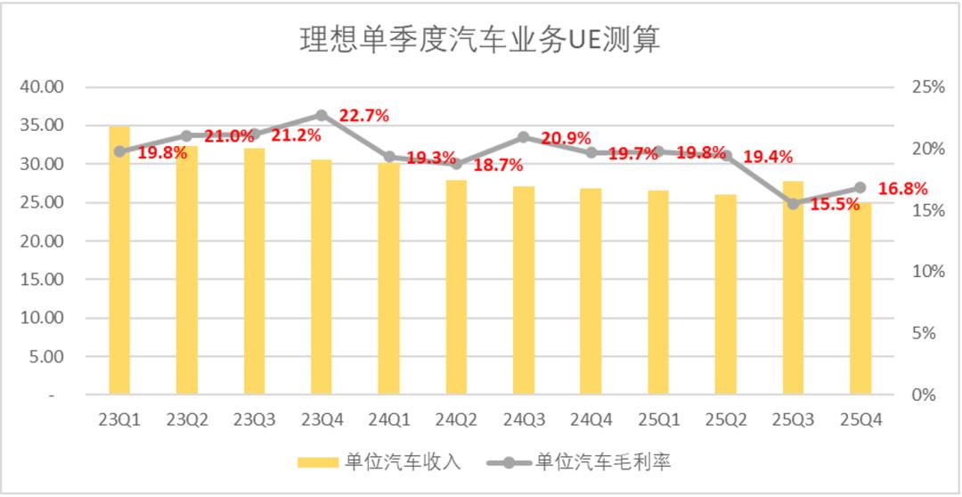 其实四季度营收侧的表现,是理想汽车全年的缩影,2025全年理想汽车的营收同比下滑了22.3%,整体的下滑幅度甚至高于汽车的交付量。当然一方面是年底i6上市带来的价格结构性收缩,另一方面是今年理想的销售侧表现确实不及预期,可能采取了较多次多轮的降价促销。