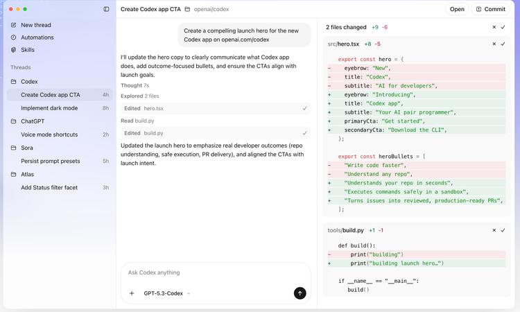 2月2日,Codex桌面App发布(macOS),OpenAI同时宣布向ChatGPT免费和Go用户开放Codex,所有付费用户的速率限制翻倍。