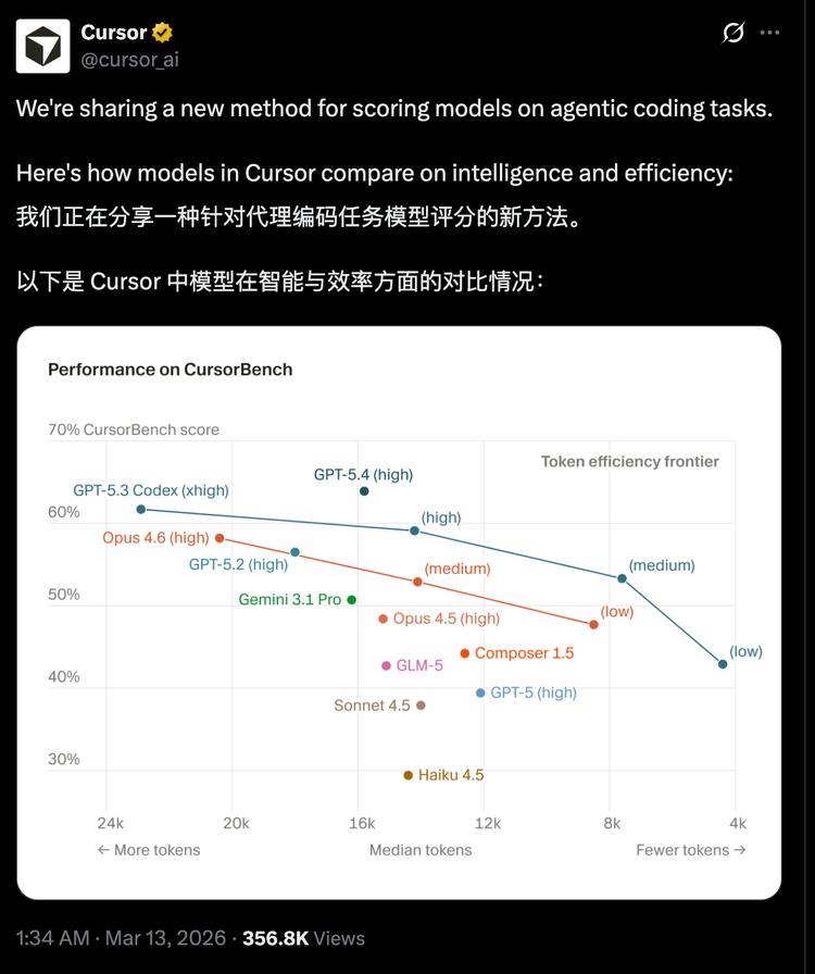 在Cursor官方的benchmark中,GPT系列整体领先其他模型。
