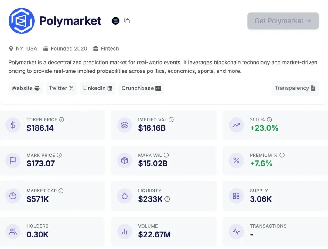 以 Polymarket 盘前交易市场为例,其在不同平台的价格如下——