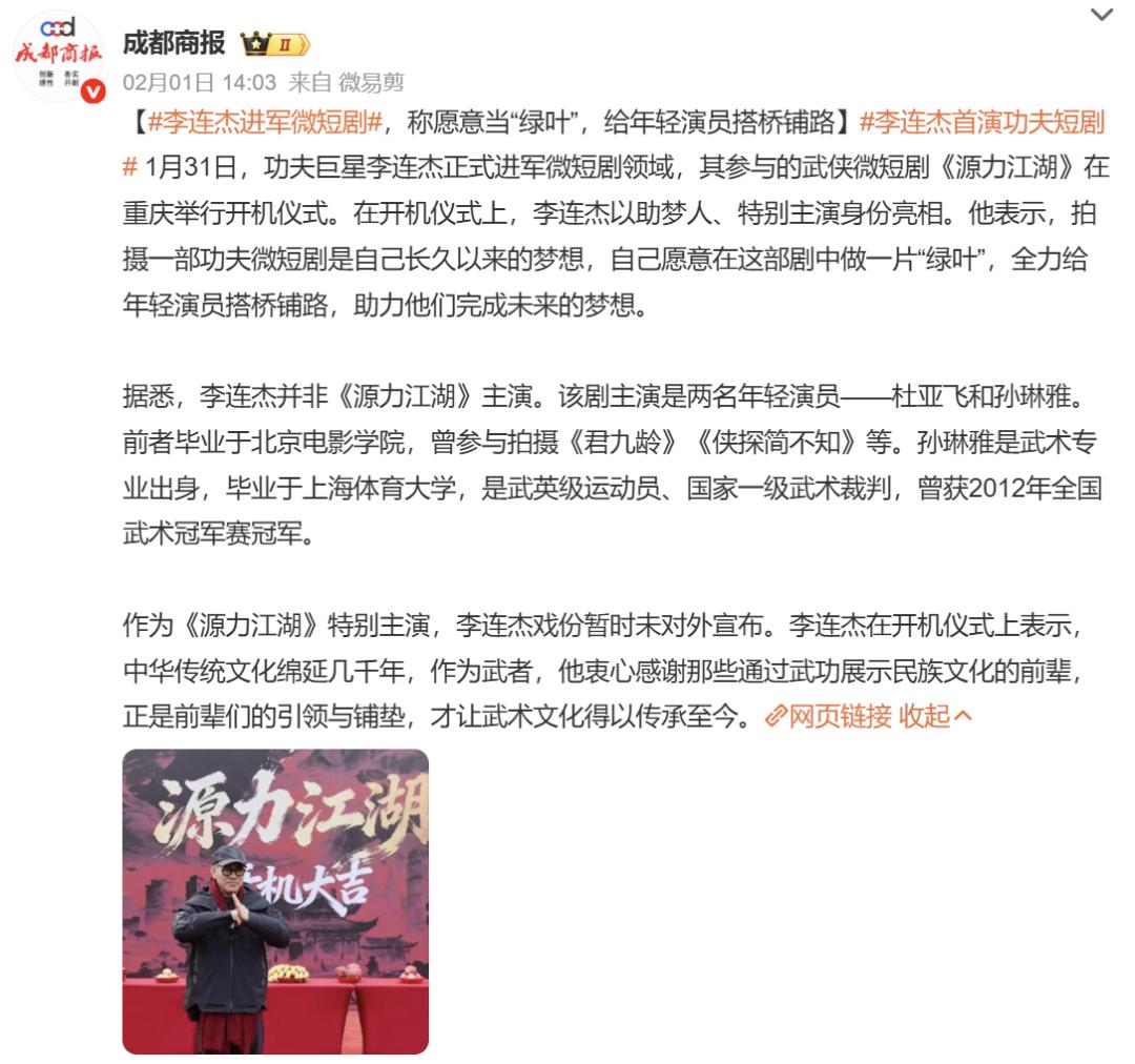 红果与李连杰、向佐的合作,可以说都是双向共赢,影武堂(吴京创办的动作演员训练基地,培养大批新人)的参与,令人浮想联翩。《扫黑》导演秦鹏飞此前深耕网络电影,是《东北警察故事》《目中无人》两个口碑系列的核心主创,他的试水或许也能说明:竖屏+动作,大有搞头。