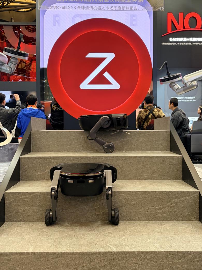 科沃斯之外,石头科技也可圈可点,带来了全球首款轮足扫地机器人G-Rover,每个轮腿均具备伸展、提升、升降功能,能够独立抬起和放下,模仿人类移动方式进行小跳跃、灵活转向与急停,具备了在复杂地形中稳定移动的能力。