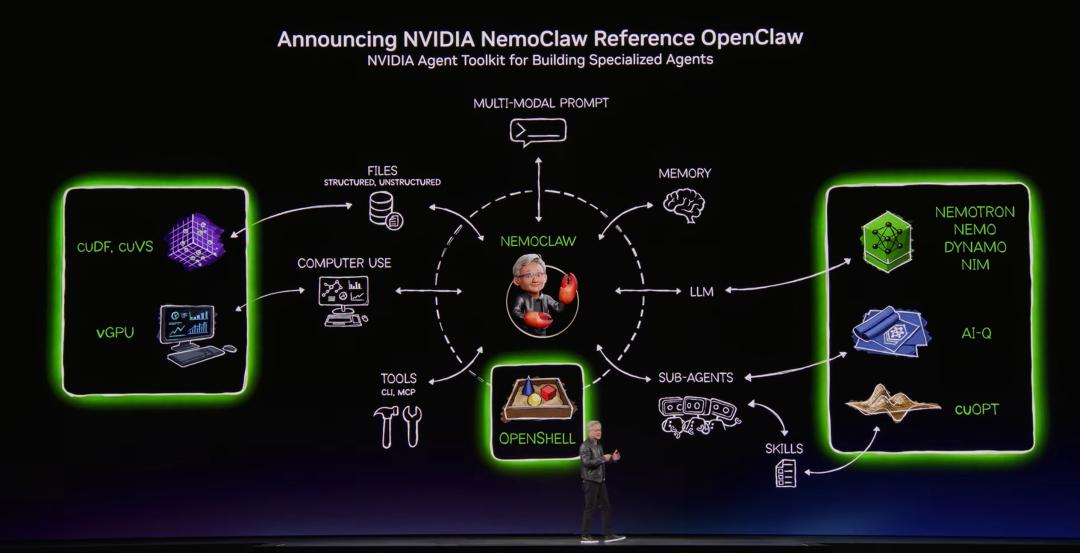 除了硬件,NVIDIA此次发布的软件,重点集中在Agent上,包括NemoClaw和Nemotron 3 Super。