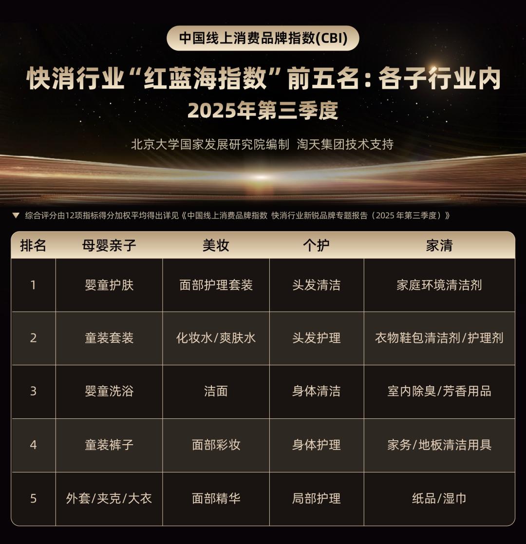 当很多人还在争论“消费降级”与“消费升级”的对立时,北大国发院等机构发布的2025年第三季度《快消行业新锐品牌榜单》(基于中国线上消费品牌指数CBI)给出了更清晰的答案:消费市场并非简单的两极分化,而是在结构性调整中催生了新的品牌生长逻辑。