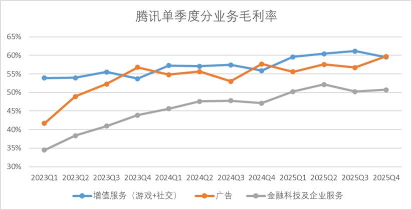 并且,腾讯四季度广告层面的效率表现不俗,营销业务的实际利润率接近60%,反超了增值服务业务。