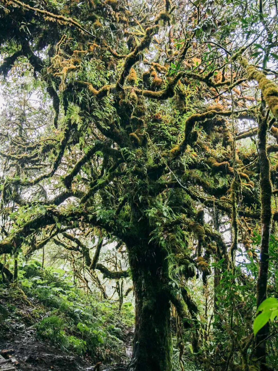 在高黎贡,毛毛球的存在,是山地云雾林共生现象的一个缩影。高大的杜鹃把水汽拢在林间,形成恒湿小气候,粗糙的树皮为苔藓与地衣提供落脚之处;反过来,柔软的苔藓层像海绵般蓄水、保湿,也为微小生灵铺开栖身之所;由此构成了一片会呼吸的活的森林。