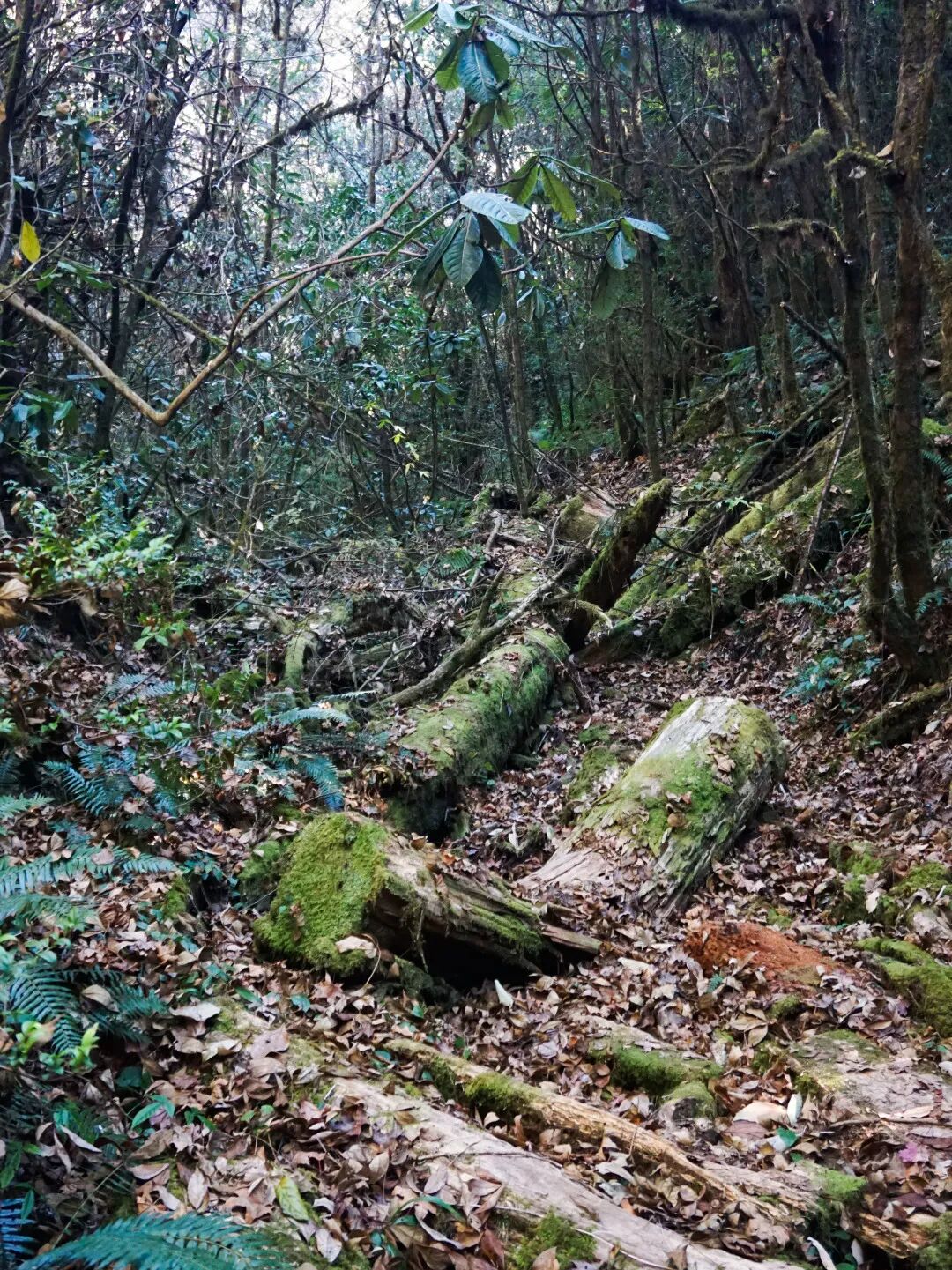 这次我们走的线路是“阿祖姆线”,在高黎贡山西北支脉狼牙山和白马山的中间处,长度 9km,海拔 2800 米。不到十公里的距离,却包含了原始森林、岩壁、湿地、瀑布多种景观,可谓是集合了高黎贡山丰富景观的精华路段。