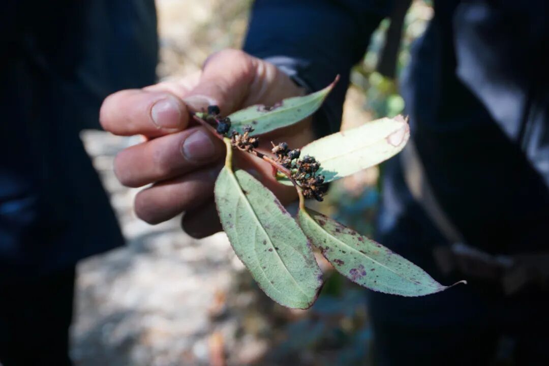 我们也遇到了“滇白珠”,蓝兔子小心地掐下一小串,示意我们放到嘴里,一股浓浓的风油精味涌进口腔。此外,还有云南有名的药材“十大功劳”、高大的云南铁杉,还有匍匐在地表的石松,它是地球上最早的植物谱系之一,比恐龙还要古老,堪称“活化石”。