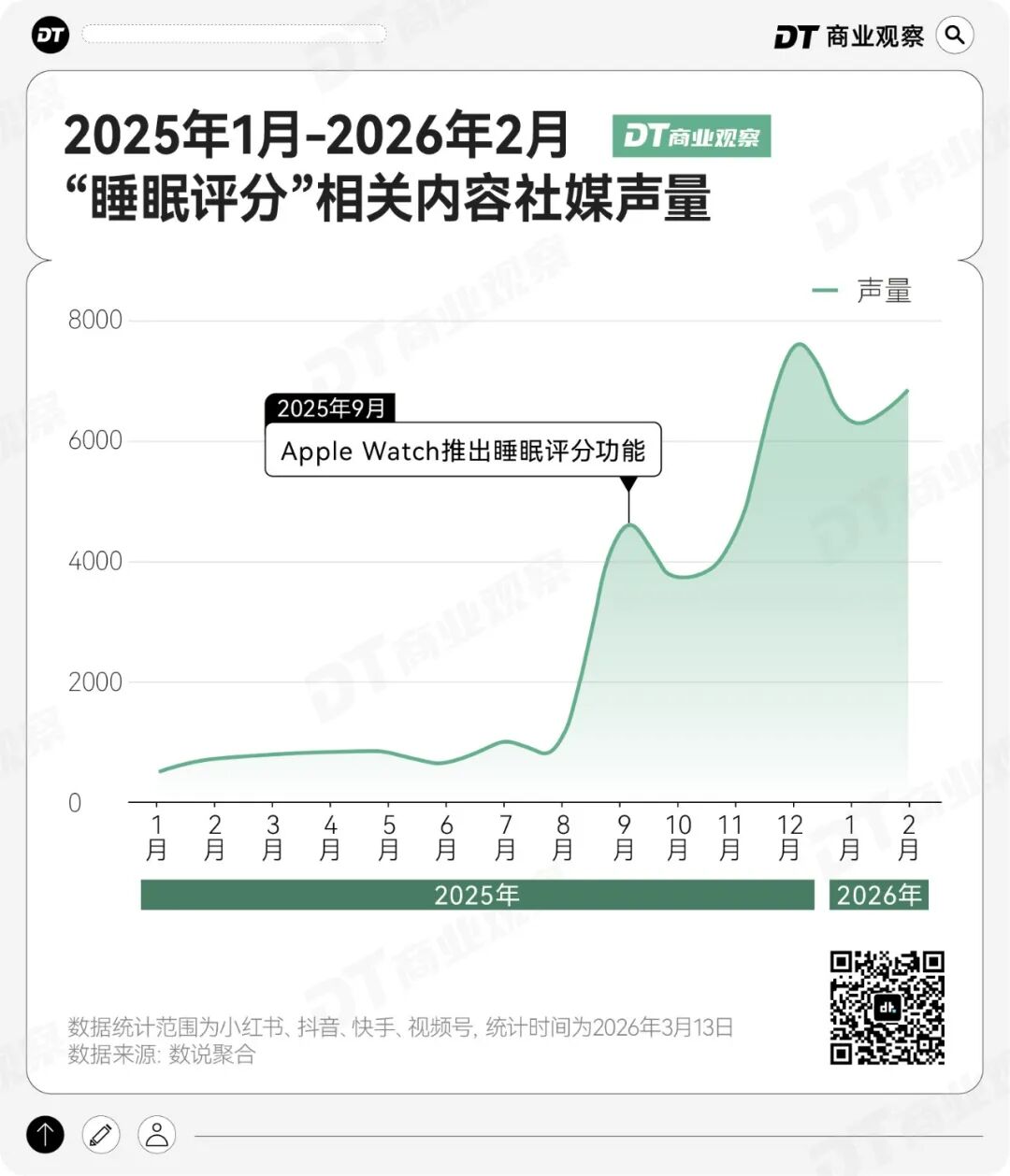 2025年9月,Apple Watch Series 11 新品发布会上,苹果正式推出睡眠评分功能。随即,相关内容在社交平台的声量走高,大量睡眠评分截图开始刷屏。有人兴奋晒出高分,也有人对数据准确性半信半疑,但无论态度如何,都没能挡住这股热潮。