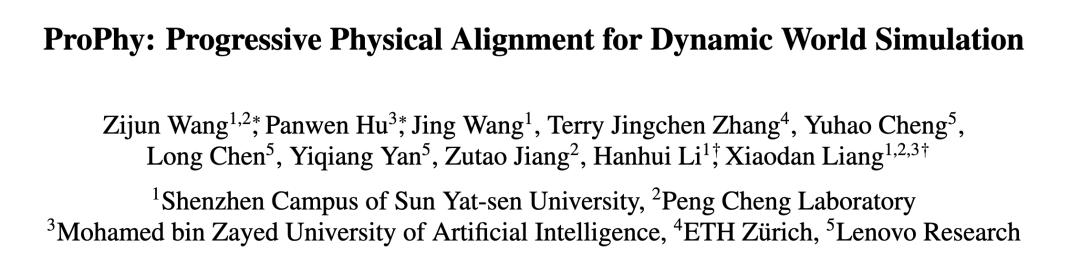 论文标题:ProPhy: Progressive Physical Alignment for Dynamic World Simulation