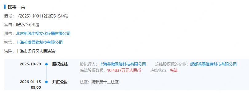 子公司「北京新线中视」与英澈网络的诉讼案件