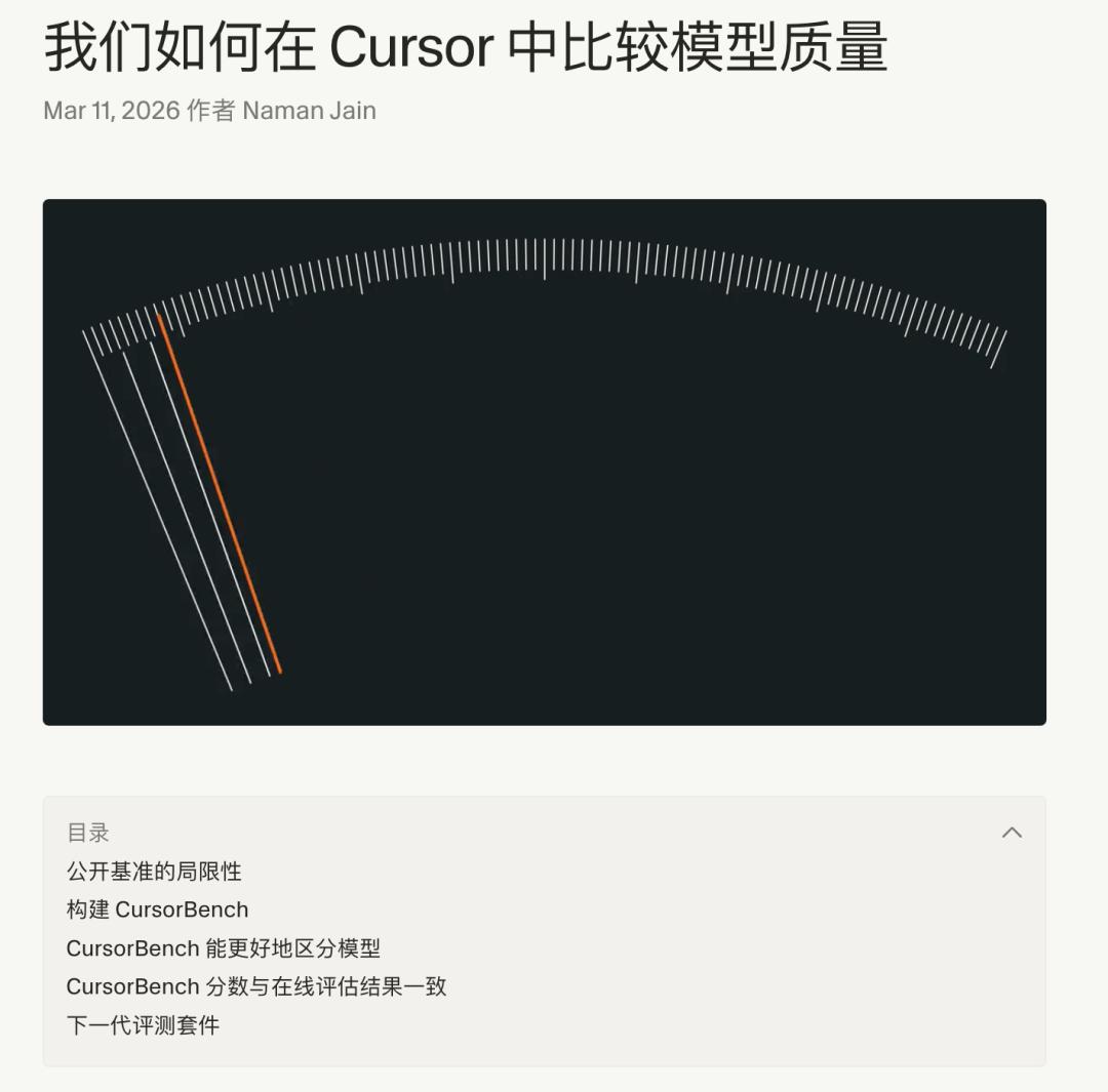 只在“通用榜单”里比高低可能已经不能满足 Cursor 了,他们最近还自建了一套基准,专门评估 agent 在真实任务执行水平,名为 Cursor Bench。