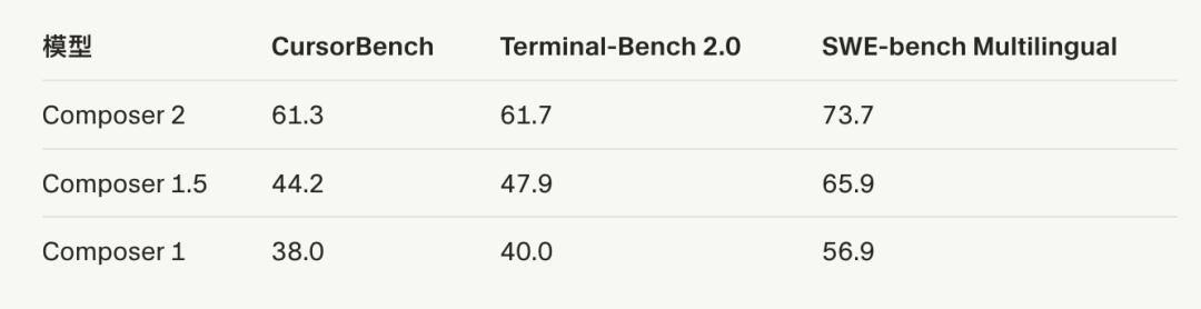 Cursor 宣称,Composer 2 在他们用上的所有基准测试中都取得了大幅提升。