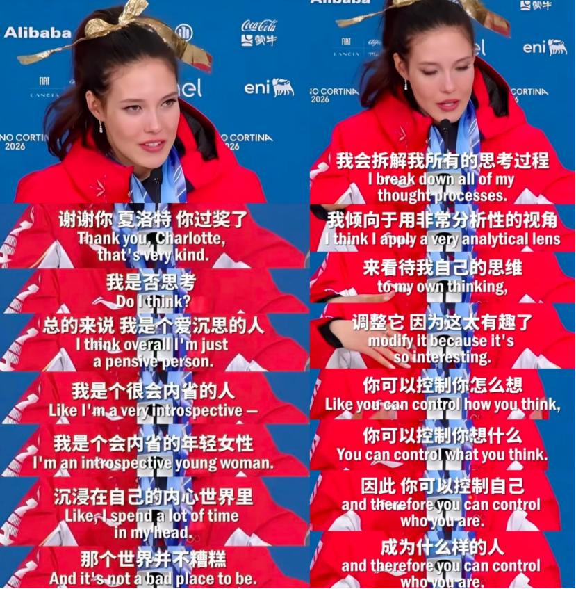 就像谷爱凌在米兰冬奥会上的那段出圈采访: