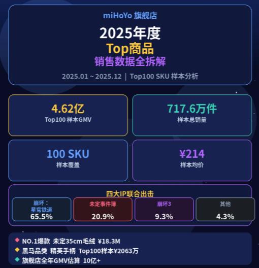 以原神旗舰店在今年2月的销售数据为例,其芙宁娜Q版手办(249元)单月销售额322万元,手办品类的SKU虽然只占18%,却贡献了当月总GMV的38.5%。