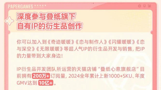 比如文创潮前面提到的叠纸游戏,2024年其天猫旗舰店的年度GMV就在15亿元左右,2025年保持了较大幅度的增长。此外,叠纸游戏去年还与X11合作了潮玩品牌DearNikki。