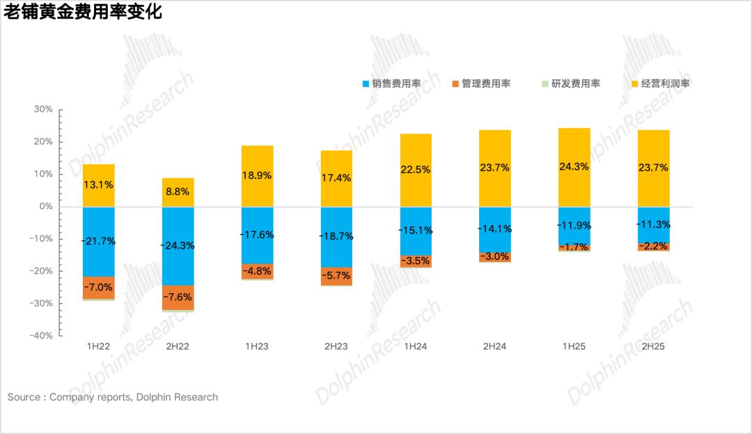 考虑到老铺在今年2月又进行了一次20%以上的大范围提价,热门爆款的涨幅甚至超 30%,海豚君预计2026年老铺的毛利率有望逐步修复至40%左右的正常水准。