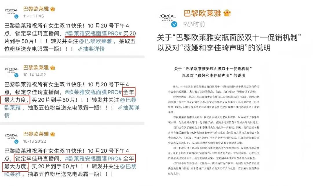 典型案例,比如2021年的欧莱雅事件,一款面膜在李佳琦、薇娅直播间卖429,在品牌自播间卖257,大主播反手要求高额违约赔偿,消费者要求退差价,品牌里外不是人。