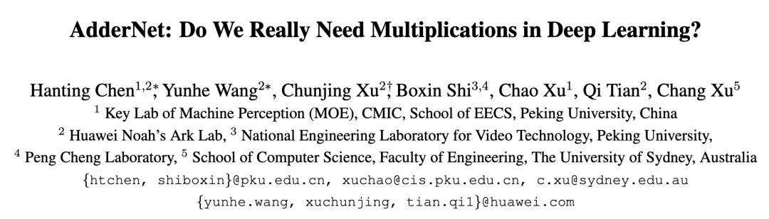 与此同时,他参与研发的 AdderNet(加法神经网络)在深度学习中以纯加法运算代替乘法,理论上可大幅降低 AI 芯片的运算功耗,也在同年 CVPR 上以口头报告形式发表,引发了不小的学术讨论。