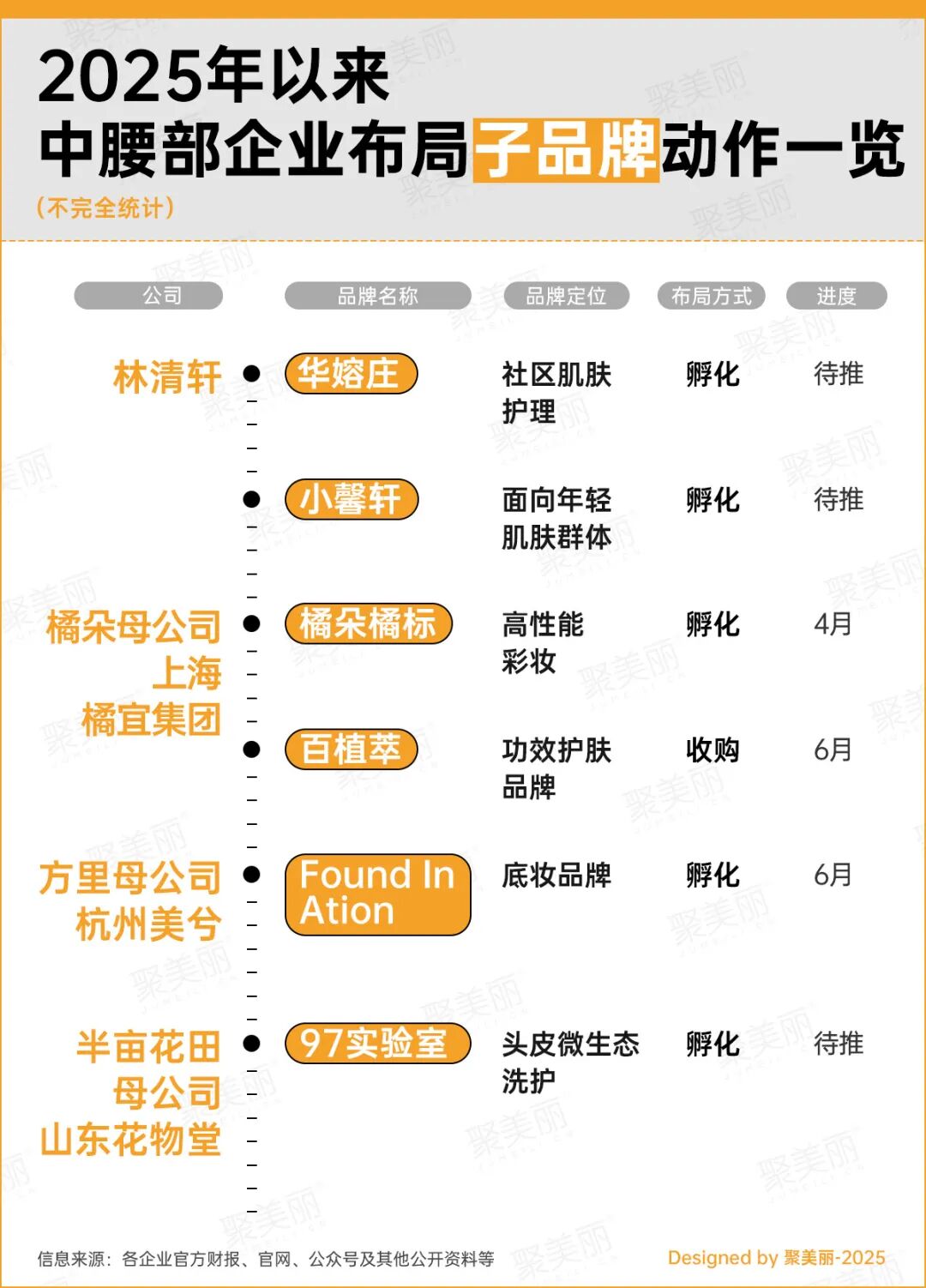 如,不同于大部分企业选择自主孵化,橘宜集团在加码自有品牌(彩妆品牌橘朵、酵色)后,便开始“买买买”模式。