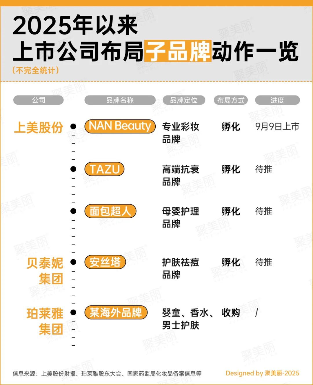 据聚美丽不完全统计,今年以来,便有3家国货美妆上市公司,即上美股份、贝泰妮集团、珀莱雅集团,先后宣布其布局子品牌的计划。