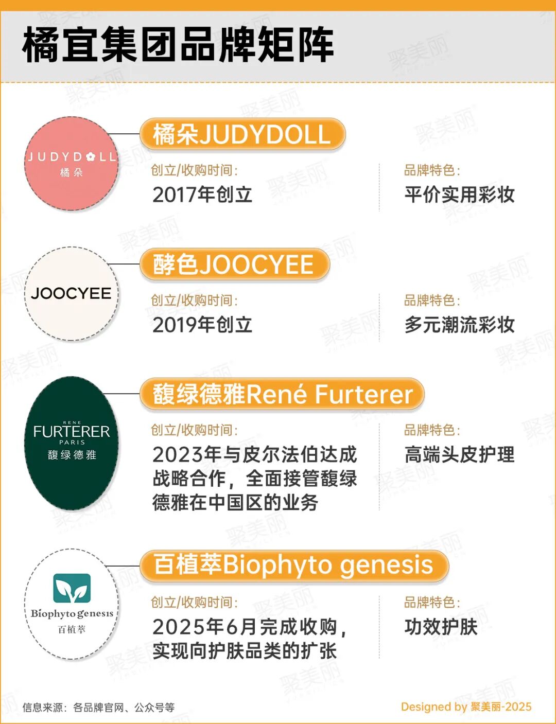但是,也不乏向与主品牌不同领域扩展的企业,比如主品牌为彩妆品类的橘朵,其母公司橘宜集团通过收购皮肤学级护肤品牌百植萃,向护肤赛道延申。