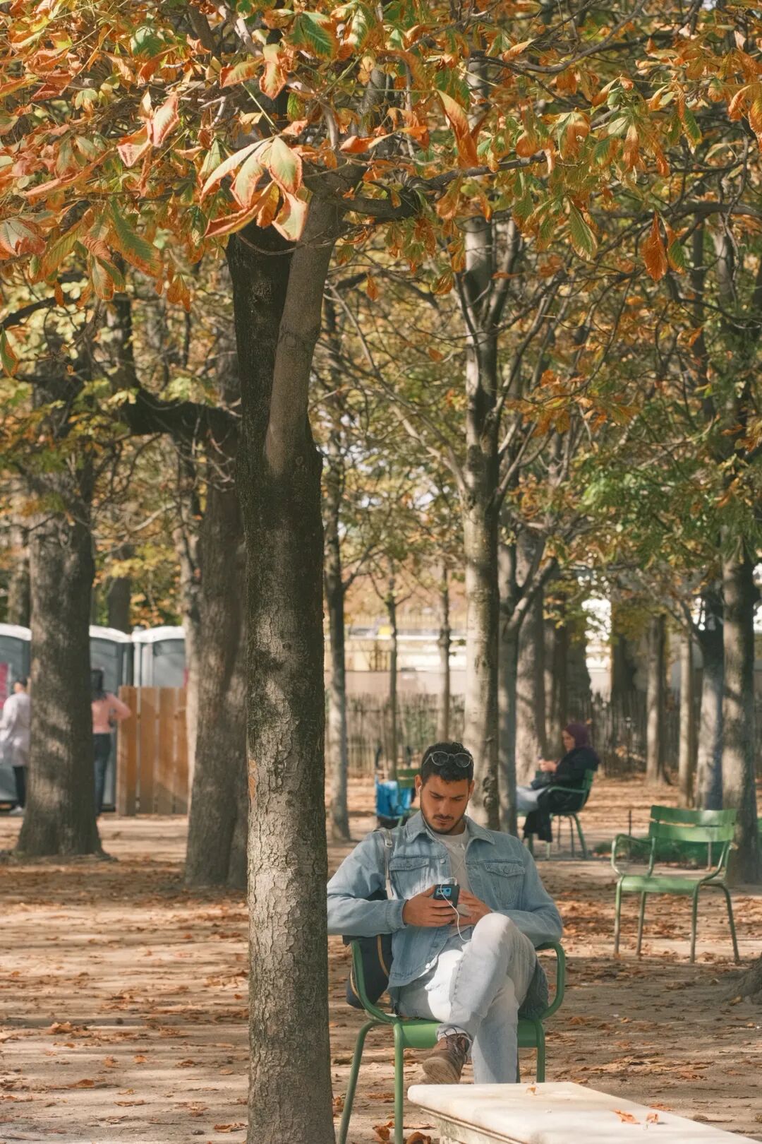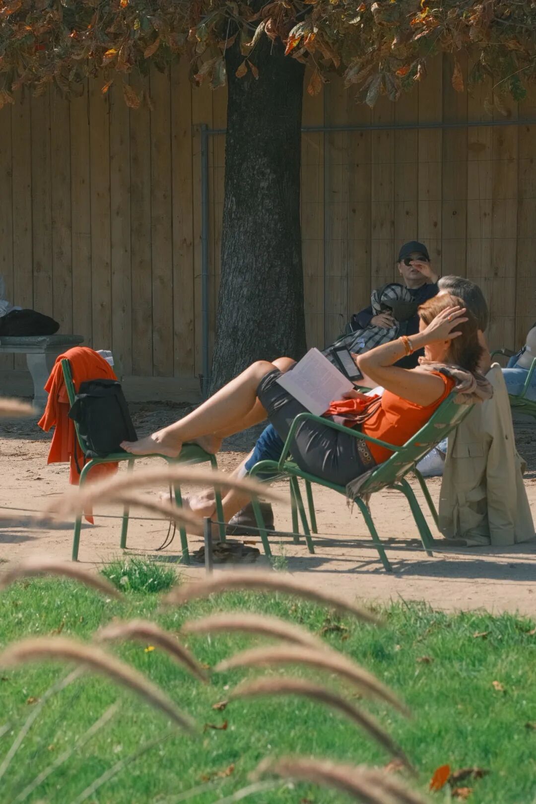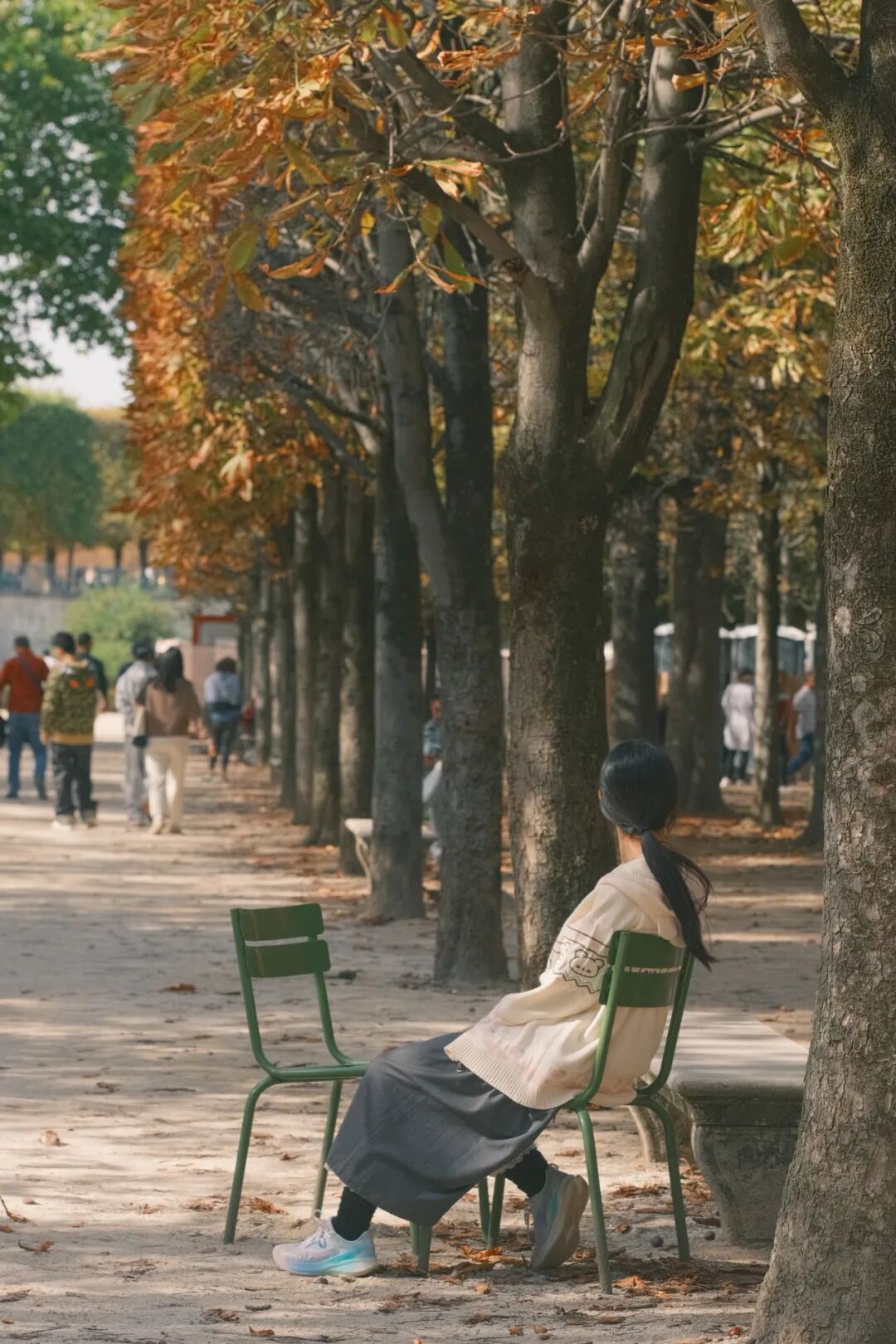 深秋的黄叶,巴黎标志性绿色椅子,看书的人,奔跑的孩子。围着喷水池坐一圈,阳光下脱去沉重的外套,就是属于自己的午后。