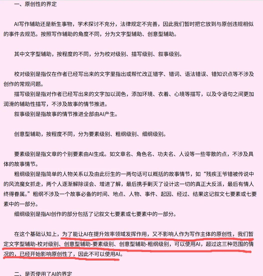 比起番茄小说,晋江文学城这类老牌付费网文平台对AI辅助写作采取了更为警惕的态度。